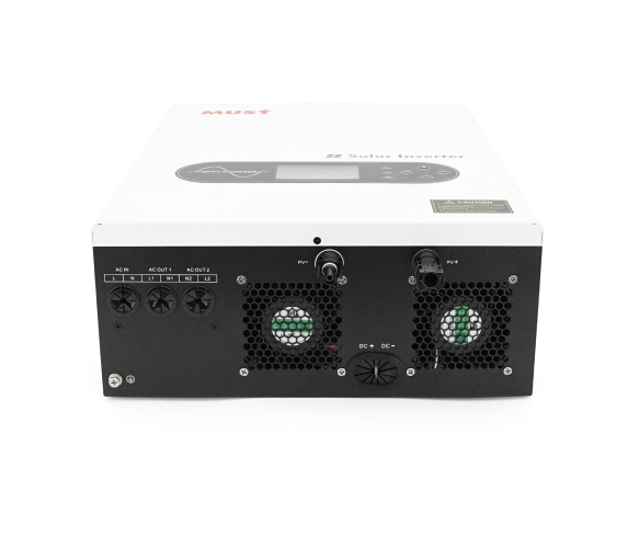 Must PV18-8048 PRO II – багатофункціональний інвертор/зарядний пристрій, що поєднує функції інвертора, сонячного зарядного пристрою MPPT і зарядного пристрою для акумулятора, щоб забезпечити безперебійне живлення, портативний розмір. Серія PV1800 PRO II може працювати без акумулятора. Максимальна вхідна напруга PV може досягати 500 В і діапазон напруги MPPT 90~430 В постійного струму, вбудовані два MPPT контролери сонячного заряду.