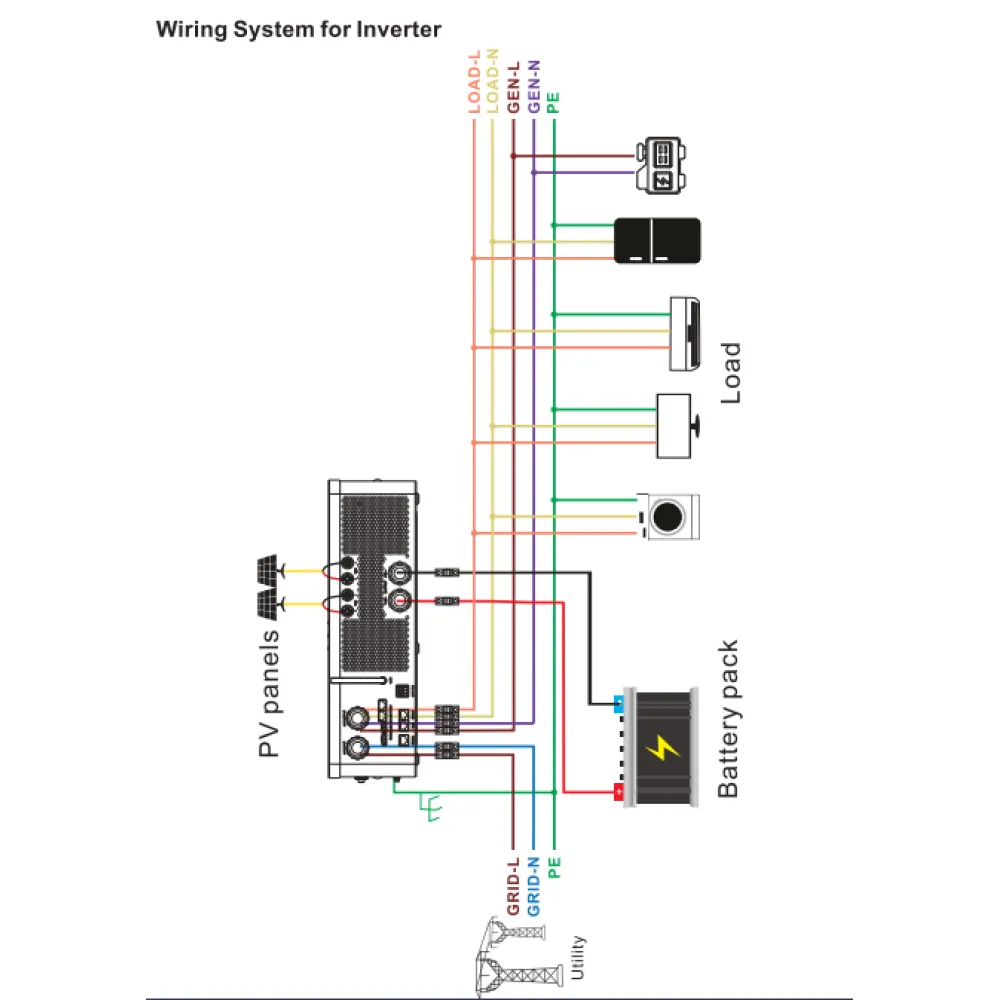 Працюючи від акумуляторної системи 48 В, інвертор забезпечує стабільне електроживлення всього будинку або комерційного об’єкта, автоматично керуючи енергією від сонячних панелей, мережі та акумуляторів. Завдяки швидкому перемиканню та високому ККД пристрій підходить для живлення чутливого та критично важливого обладнання.